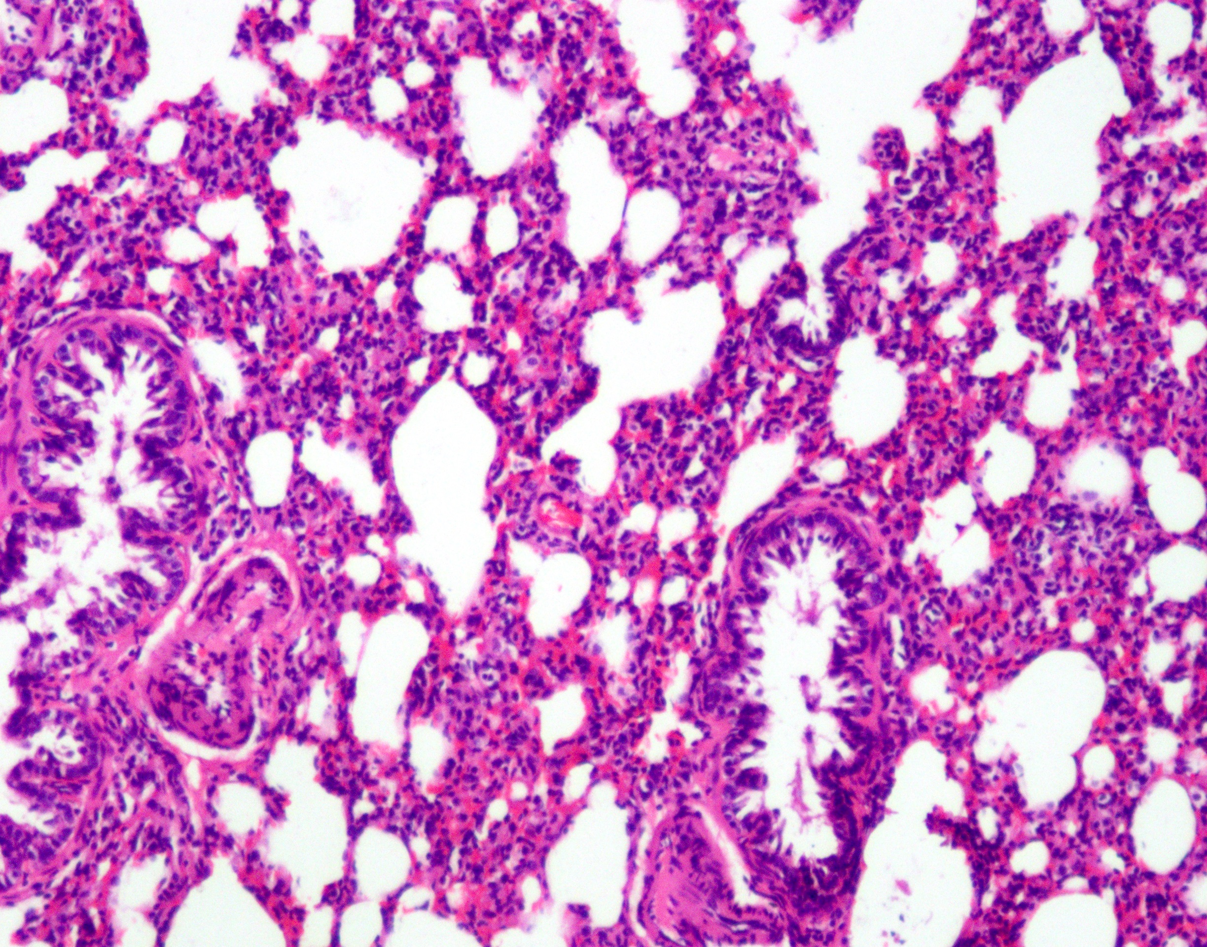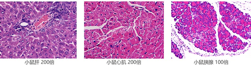 (图示:小鼠肝脏组织HE染色,细胞核呈蓝色,细胞质呈粉红色)